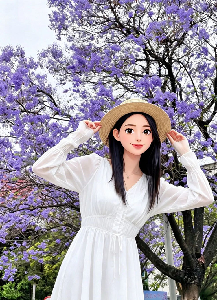 择时与光线:黄金时段为早晨9-10点(光线柔和,适合拍花海全景)、傍晚16-18点(逆光拍摄蓝花楹,花瓣呈现“发光”效果,搭配落日余晖更出片)。