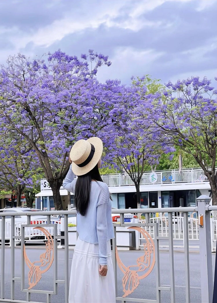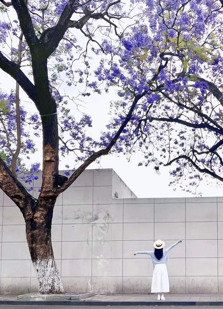 据了解,今年蓝花楹花期将持续至5月初,赏花、拍照与城市漫游可一站式解锁。